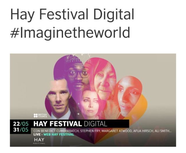 Hay Festival 2020 abre sus puertas del 22 al 31 de mayo El mayor Festival de la #Literatura y de las #Artes del #ReinoUnido se traslada al entorno digital con una oferta de más de 80 sesiones en directo 100% en inglés y de acceso totalmente gratuito. Benedict Cumberbatch, Stephen Fry, Margaret Atwood, Vanessa Redgrave,…